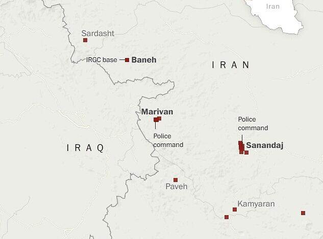 وأكدت صحيفة "ذا بوست" أن الغارات الجوية ألحقت أضراراً أو دمرت مباني الشرطة في مهاباد ومريوان وسنندج وكرمانشاه، بالإضافة إلى قاعدة تابعة للحرس الثوري الإيراني في بانه.