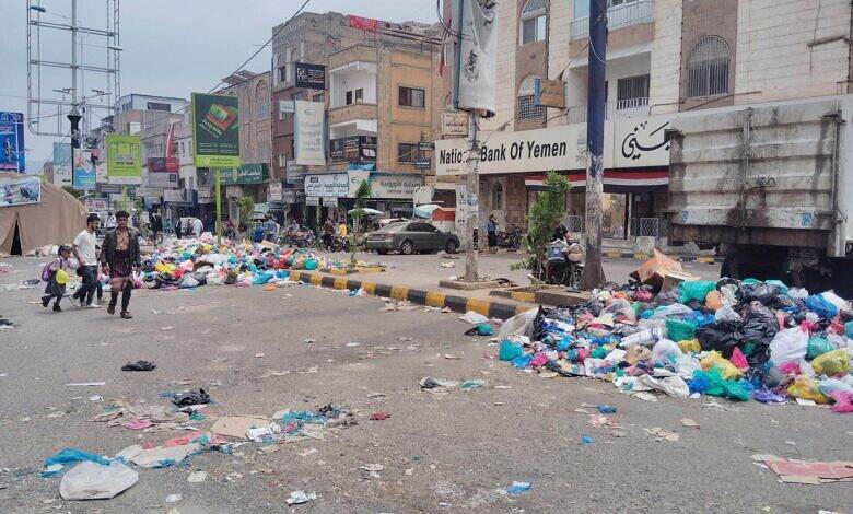 تكدس القمامة في تعز إثر إضراب عمال النظافة احتجاجاً على عدم ضبط قتلة مديرة المكتب النظافة