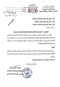 وفي مذكرة لمحافظ المهرة إلى مدير عام مكتب الجمارك في محافظة المهرة، ومدير جمارك شحن ومدير جمارك صرفيت ،حيث الزامهم بتوريد الايرادات المركزية السابقة بحسب قرار المجلس المحلي والمكتب التنفيذي، حتى يتم حسب مذكرته مع رئيس مجلس الوزراء وزير المالية، ورئيس مجلس القيادة الرئاسي .