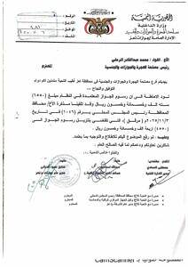 وحسب مذكرة محافظ تعز لرئيس الحكومة فقد قامت رئيس مصلحة الجوازات، بتأريخ 9 نوفمبر 2025 إلى مدير عام فرع المصلحة بالمحافظة، يقضي بالزامه بقرارات مجلس الوزراء وتوجيهات وزير الداخلية، وتعاميم المصلحة والالتزام بتحصيل الرسوم المضافة، لصالح رئاسة المصلحة والمكتب بمقترح التعديل.