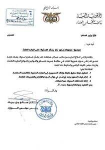 وطالب رئيس الحكومة بإحالة المتسببن إلى الجهات الرقابية والقانونية المختصة، كما تضمنت مذكرة رئيس الحكومة بإلزام قيادة المحور بوقف أي تدخل في موارد الدولة والألتزام بالتشريعات النافذة .