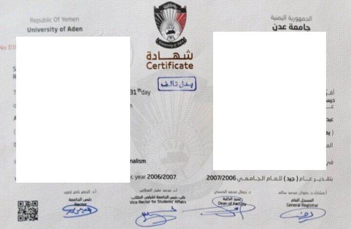 طلاب سابقون في جامعة عدن: "شهادات «بدل فاقد وبدل تالف» بمواصفات مشوهة تعرقل المنح والتوظيف.