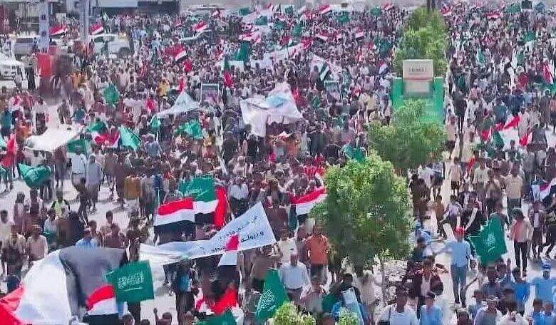 آلاف المحتجين في المخا بتعز يجددون دعمهم للسعودية ودول الخليج في مواجهة إيران