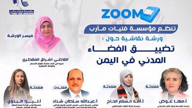 جلسة نقاش في مأرب عن تضييق الفضاء المدني في اليمن تنظمها مؤسسة فتيات مأرب