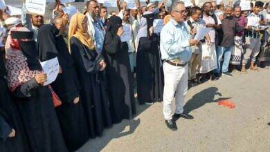 نازحوا القطاع الحكومي ينفذون وقفة احتجاجية في المعاشيق للمطالبة بصرف مرتباتهم